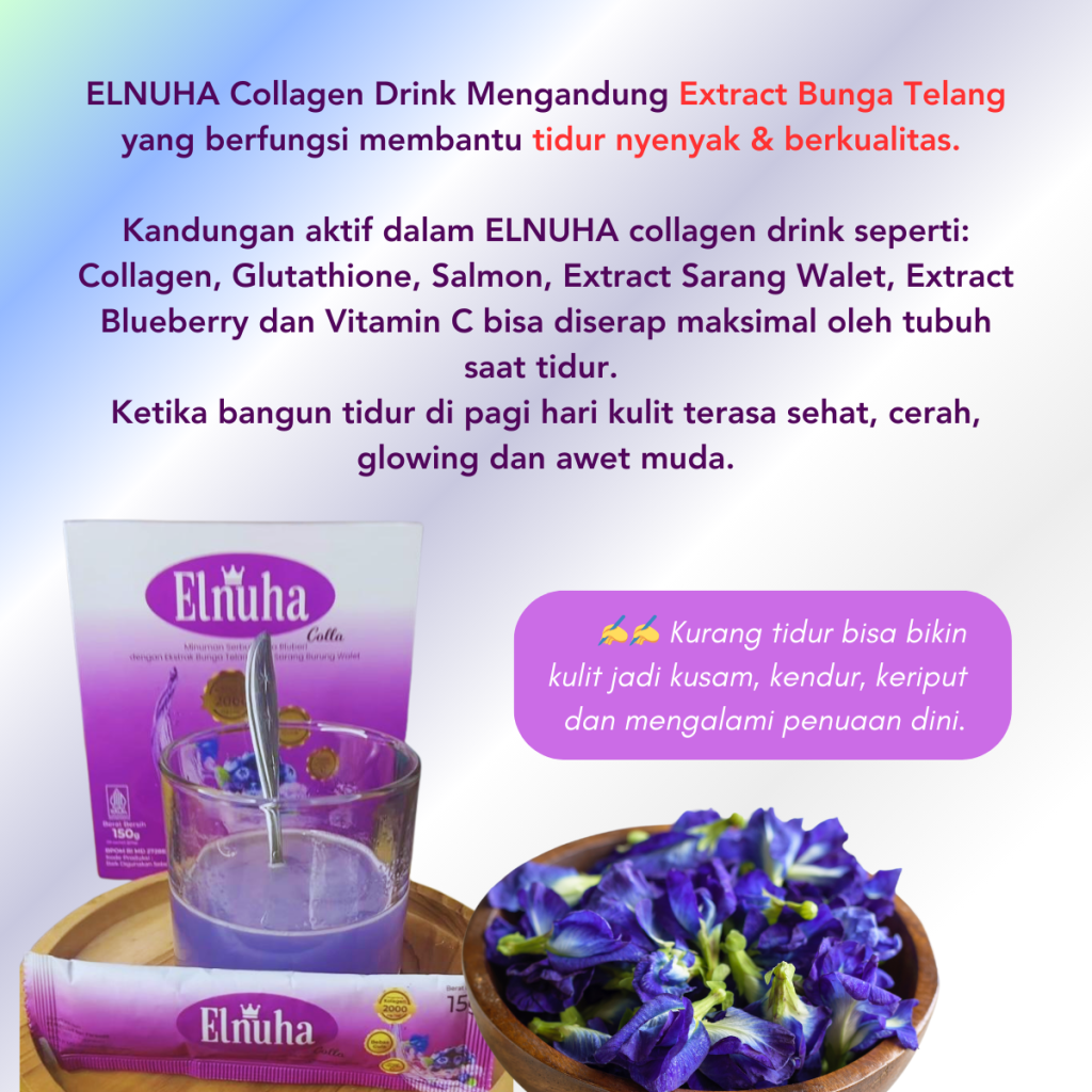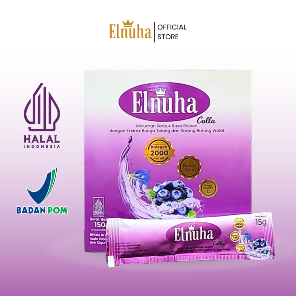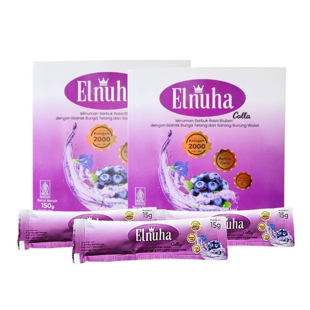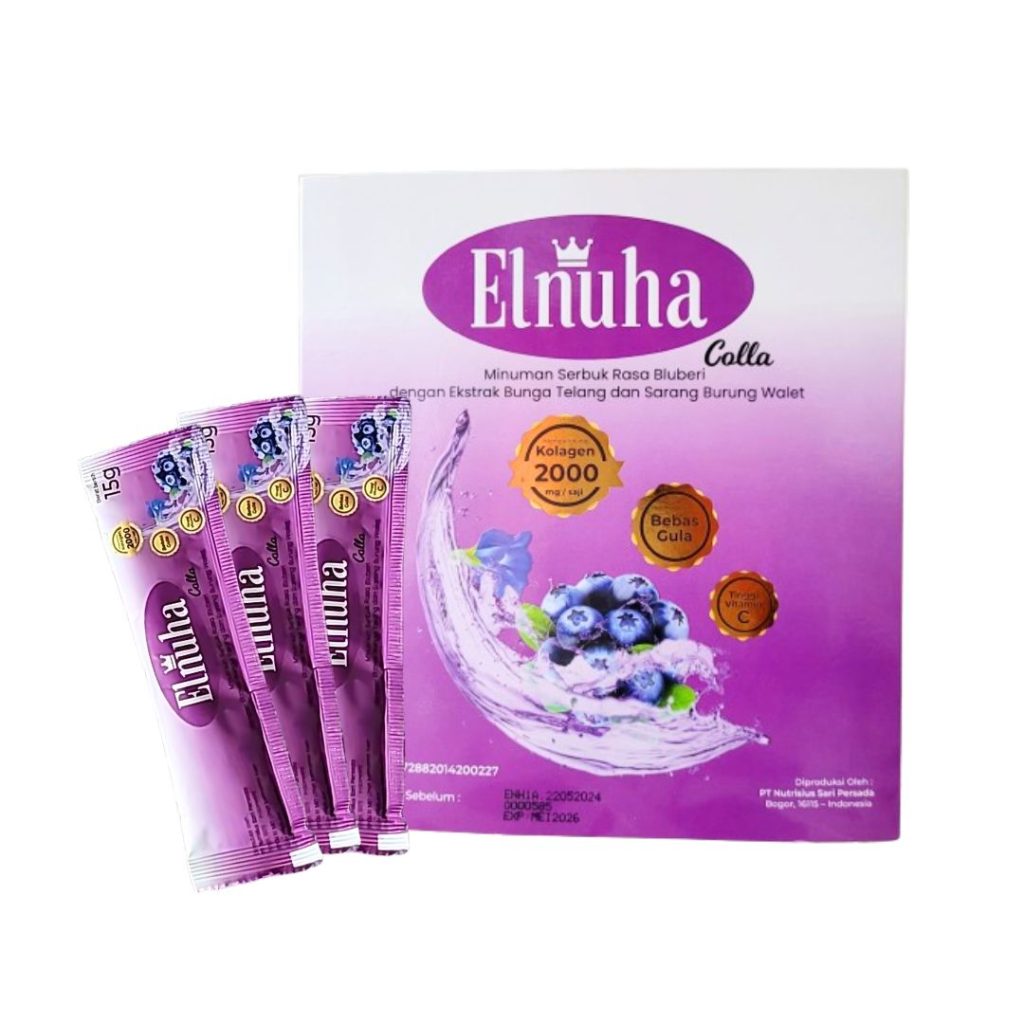 ELNUHA Collagen Drink merupakan Minuman pemutih badan dari dalam dengan rasa blueberry. Mengandung 2300 Collagen Tripeptide, L-Glutathione, salmon, extract sarang walet, tinggi vitamin C, dan BEBAS GULA (menggunakan pemanis alami stevia).